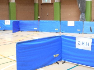 TVのバラエティー番組でご覧になった事があるかもしれませんが、広い体育室一面を使い、ヒット・2ベースヒット・アウト・ホームランなどの囲いを作り、ボールがその囲いに入れば、その表示に従ってゲームが進んでいきます。